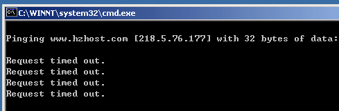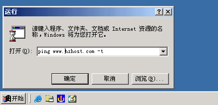 2> 在打开后面输入"ping www.hzhost.com -t",如下图所示: